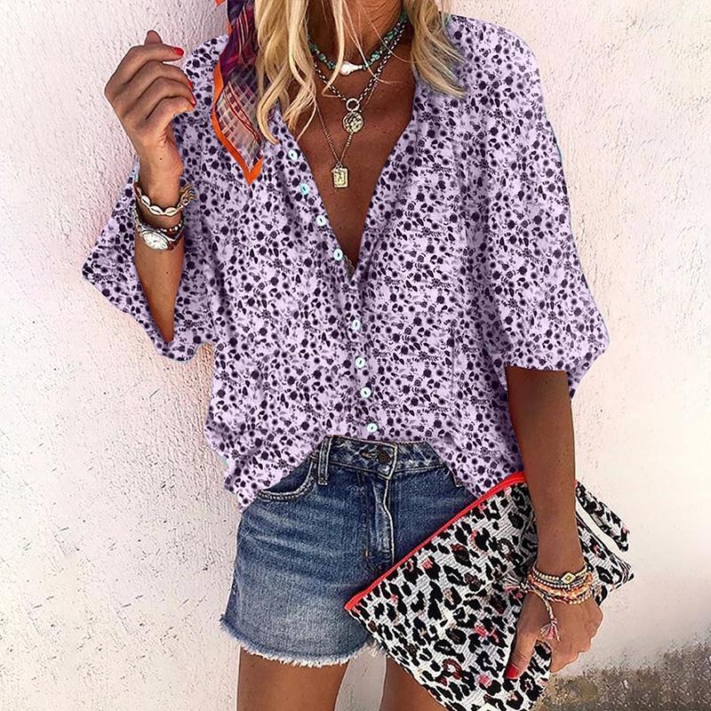 Large size loose women blouse 2023 summer V-neck printed women blouse tops fashion casual five-point sleeve women shirts