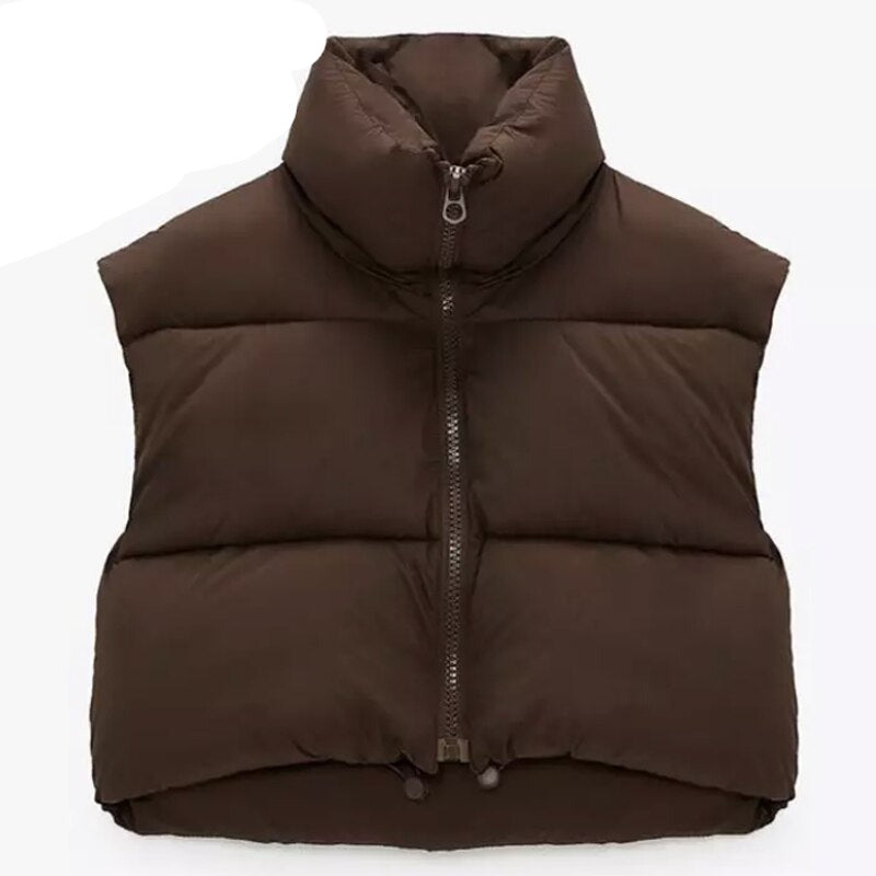 ueeshop New Spring Autumn Women Warm Sleeveless Jackets Vintage Solid Zipper Cotton Coat Female Casual Short Outwear Ladies