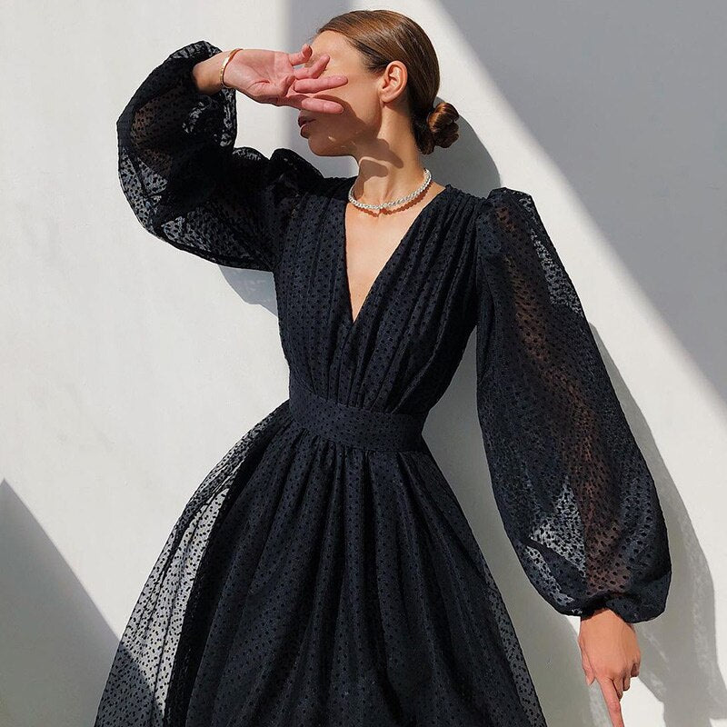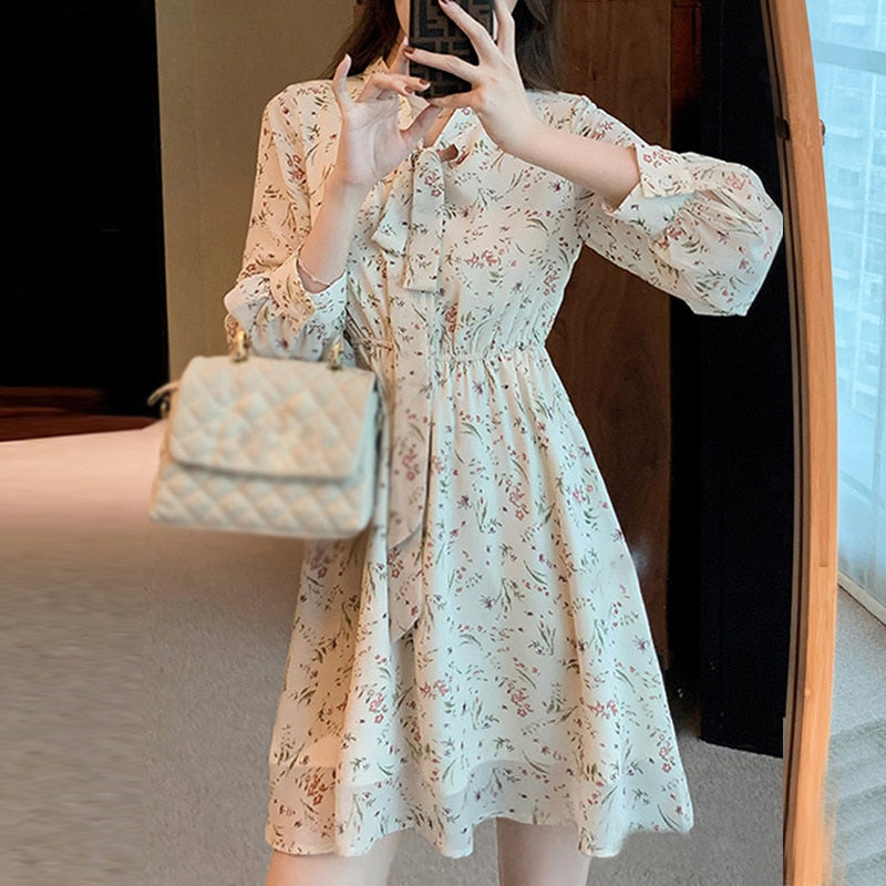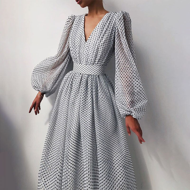 ueeshop Vintage Dot Printing Women 2023 Spring Chiffon Dress Summer Fashion Casual Dress Boho Beach Women A-line Vestidos