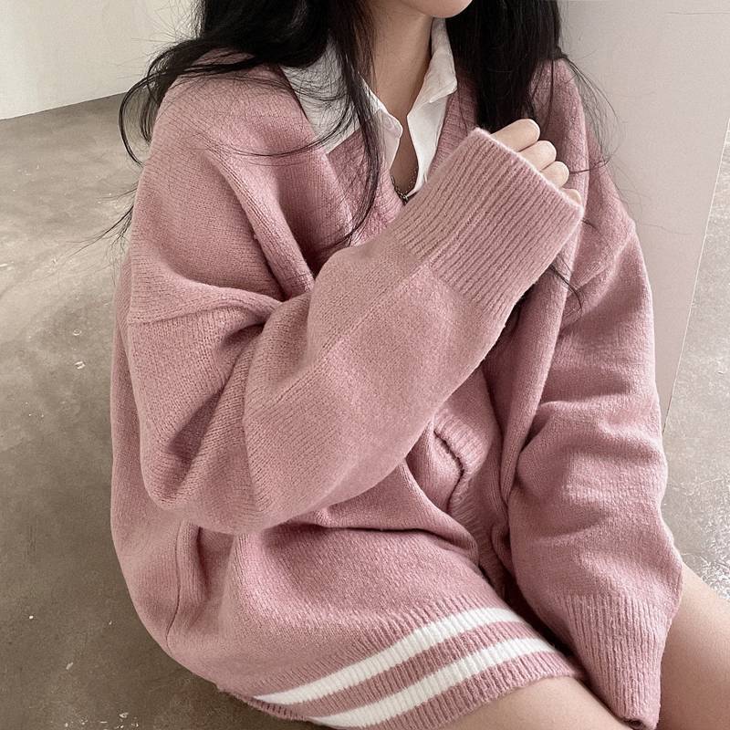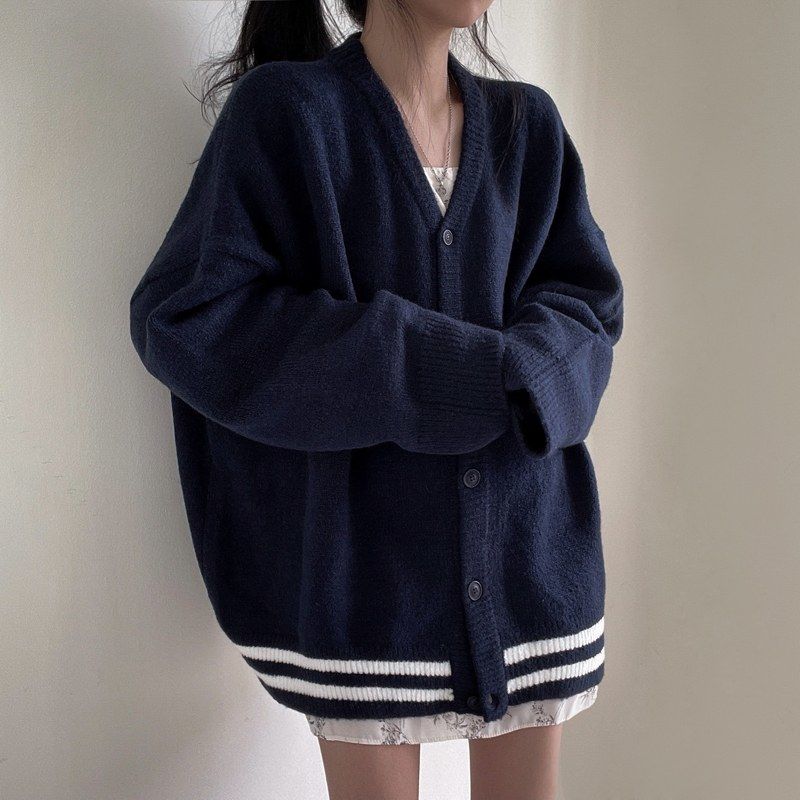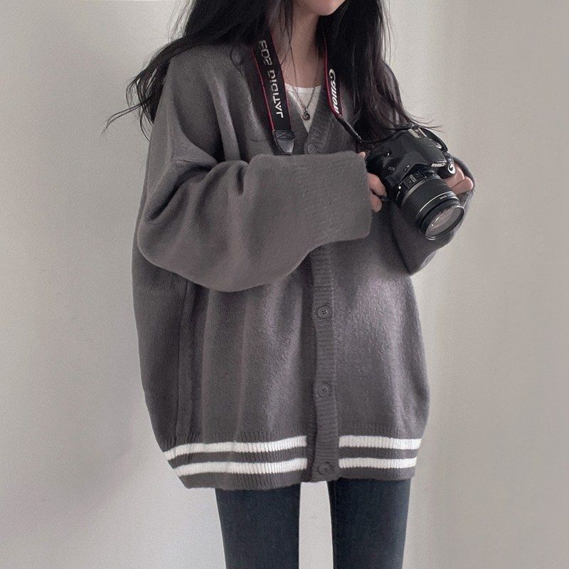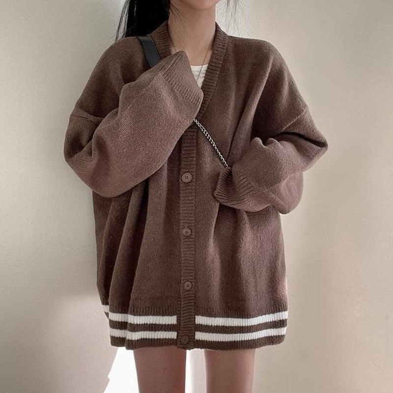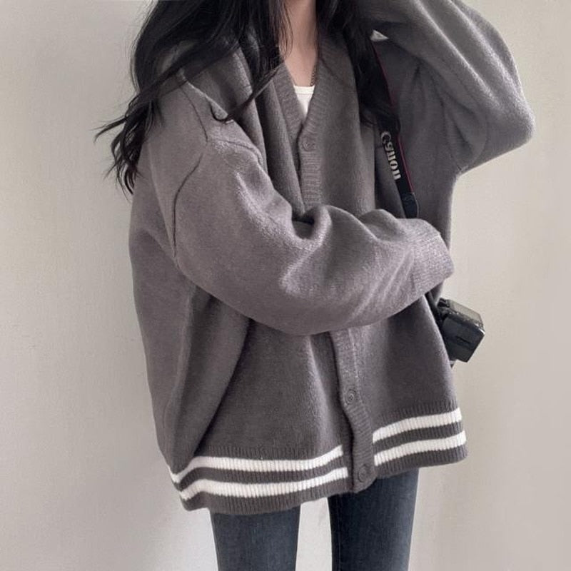Black Friday ueeshop Korean Style Basic Solid Cardigan Sweater Women Preppy Fashion Oversize Long Sleeve Jumper Female Autumn V-Neck Jackets