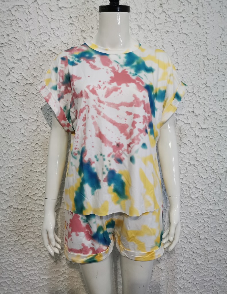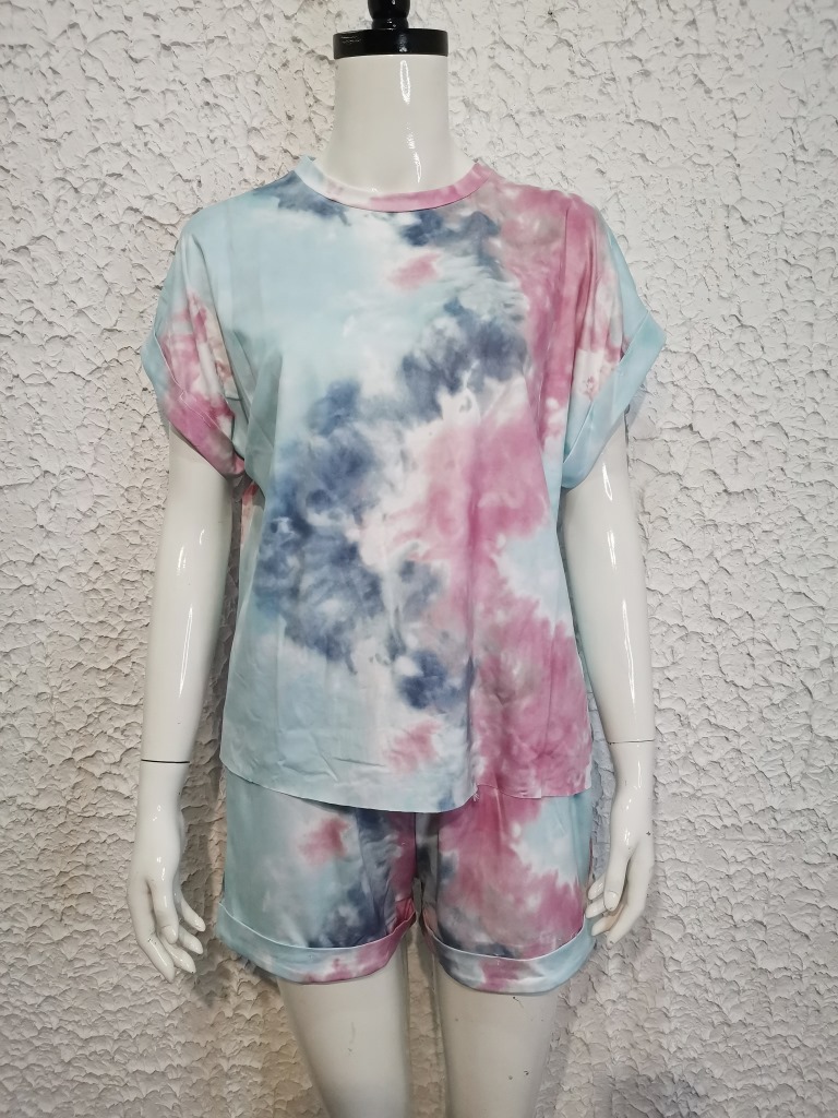 Back to school outfits ueeshop Women Casual T-Shirts Sets Summer Tie Dye Print Short Sleeve Top Shorts Suit Two Pieces Set Female Tracksuits Outfits Streetwear